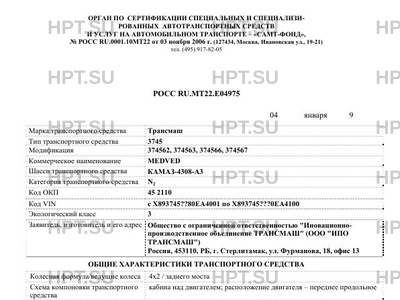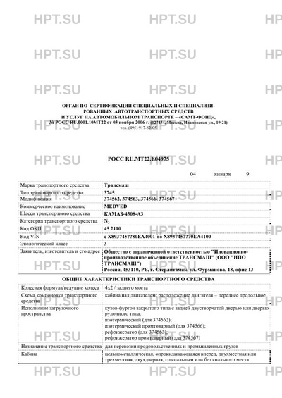 | Базовое ТС / Шасси | КАМАЗ-4308-А3 |