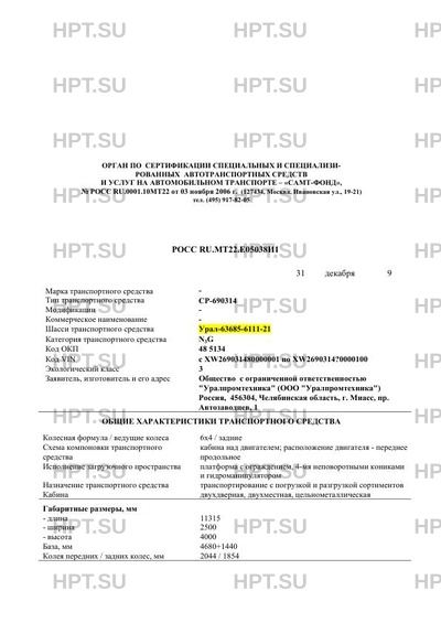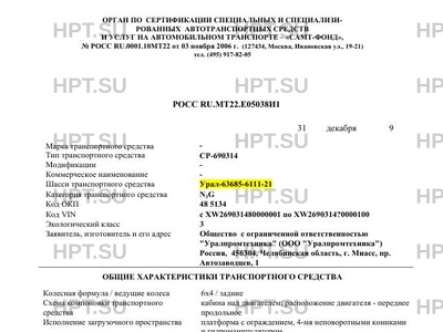 Коммерческое наименование СР-690314 на шасси Урал-63685-6111-21