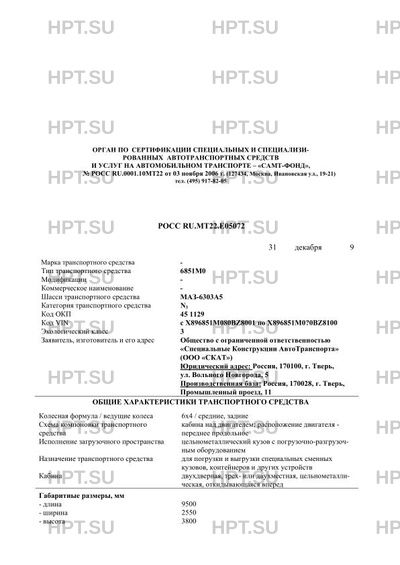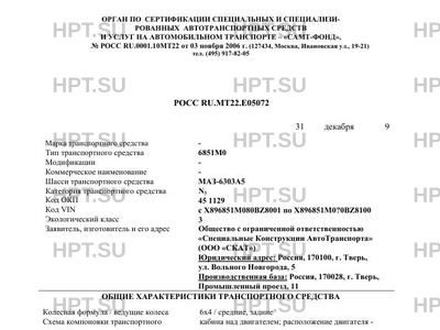 | Коммерческое наименование | 6851М0 на шасси МАЗ-6303А5 |