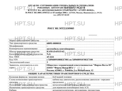 | Базовое ТС / Шасси | КАМАЗ-65115-62 |