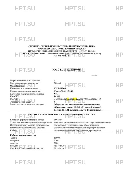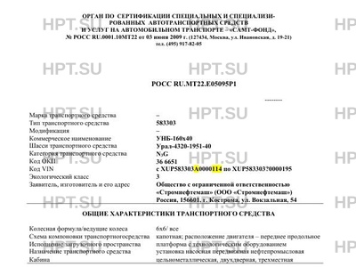 | Коммерческое наименование | 583303 на шасси Урал-4320-1951-40 |