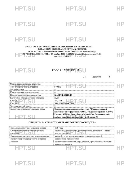 | Тип ТС | 573673 на шасси КАМАЗ-43118-15 |