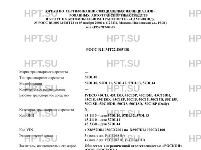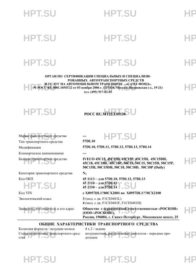 | Базовое ТС / Шасси | IVECO 45C15, 45C15D, 45C15P, 45C15H, 45C15DH, 45C18, 45C18D, 45C18P, 50C15, 50C… |