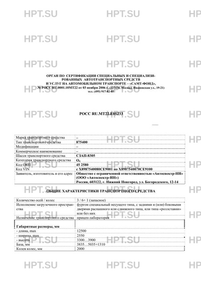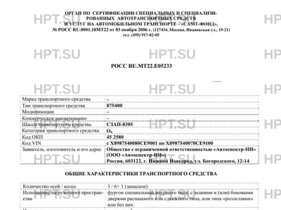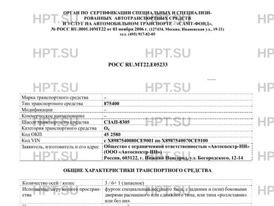 Коммерческое наименование 875400 на шасси СЗАП-8305