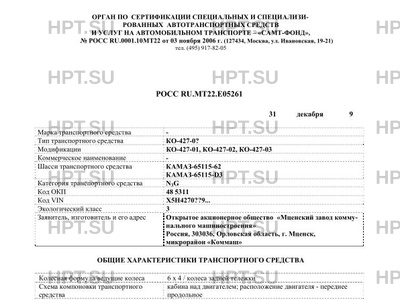 | Базовое ТС / Шасси | КАМАЗ-65115-62 КАМАЗ-65115-D3 |