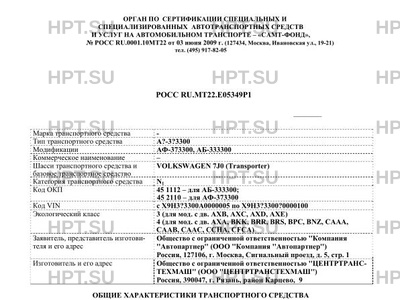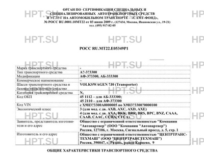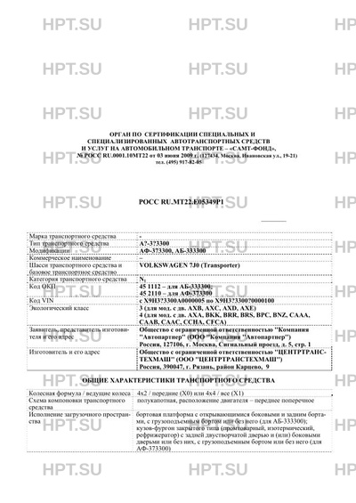| Коммерческое наименование | АФ-373300, АБ-333300 на шасси Volkswagen 7J0 (Transporter) |