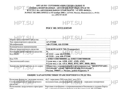 | Базовое ТС / Шасси | VOLKSWAGEN 7J0 (Transporter) |