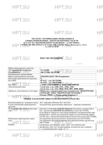 | Коммерческое наименование | АФ-373300, АБ-333300 на шасси VOLKSWAGEN 7J0 (Transporter) |