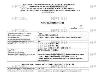 Предприятие-изготовитель Открытое акционерное общество "Автомобильный завод "Урал" (ОАО "Автомобильный завод "Урал"). Россия,456300, г. Миасс Челябинской области, пр-т Автозаводцев, 1