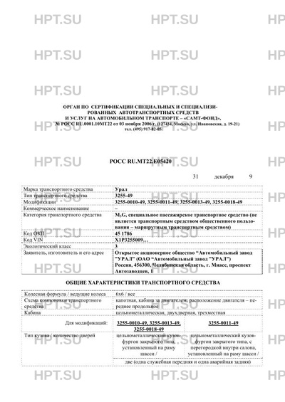 | Тип ТС | 3255-0010-49, 3255-0011-49, 3255-0013-49, 3255-0018-49 |