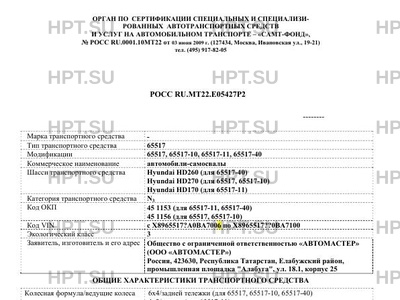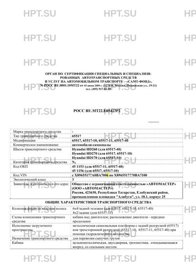 | Базовое ТС / Шасси | Hyundai HD260 (для 65517-40) Hyundai HD270 (для 65517, 65517-10) Hyundai HD170 … |