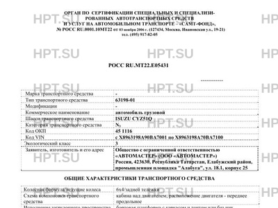 | Тип ТС | 63198-01 |