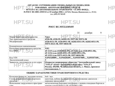 Предприятие-изготовитель Открытое акционерное общество "Автомобильный завод "Урал" (ОАО "Автомобильный завод "Урал"). Россия,456300, г. Миасс Челябинской области, пр-т Автозаводцев, 1