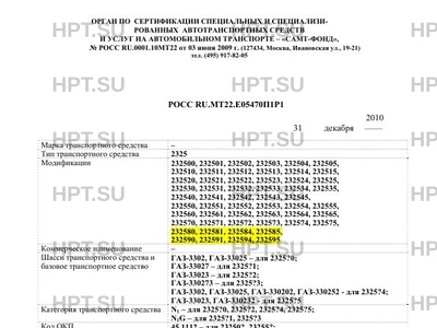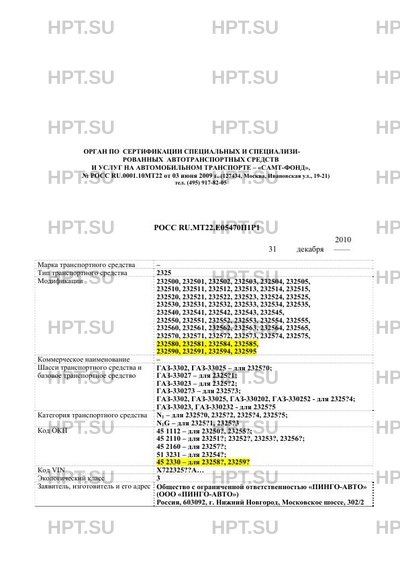 | Базовое ТС / Шасси | и ГАЗ-3302, ГАЗ-33025 - для 2325?0; ГАЗ-33027 - для 2325?1; ГАЗ-33023 - для 232… |