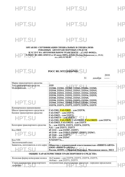 | Базовое ТС / Шасси | и ГАЗ-3302, ГАЗ-33025 - для 2325?0; ГАЗ-33027 - для 2325?1; ГАЗ-33023 - для 232… |
