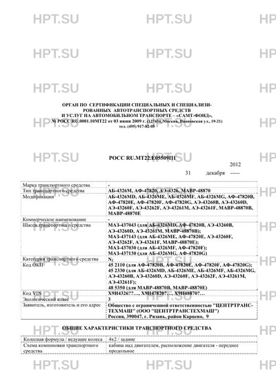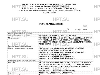| Тип ТС | АБ-4326М, АФ-47820, АЭ-4326, МАВР-48870 |