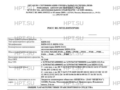 | Тип ТС | БЦМ-112.5 , БЦМ-112.6 на шасси Scania Р6Х200 |