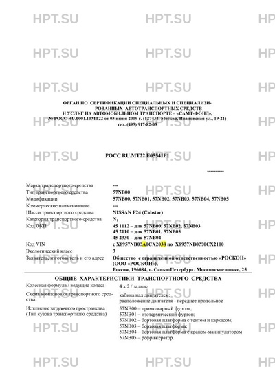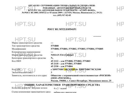 | Тип ТС | 57NB00, 57NB01, 57NB02, 57NB03, 57NB04, 57NB05 на шасси Nissan Cabstar |