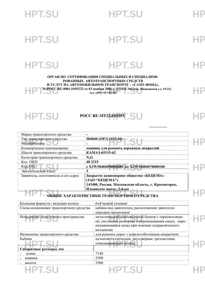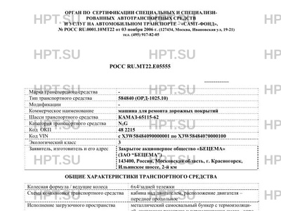 | Коммерческое наименование | 584840 (ОРД-1025.10) на шасси КАМАЗ-65115-62 |