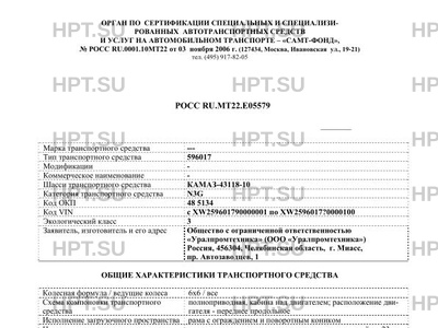 | Коммерческое наименование | 596017 на шасси КАМАЗ-43118-10 |