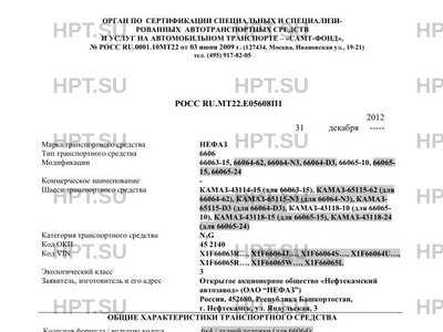 | Коммерческое наименование | 66063-15, 66064-62, 66064-N3, 66064-D3, 66065-10, 66065-15, 66065-24 на шасси К… |
