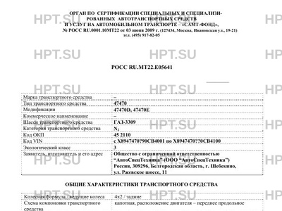 | Тип ТС | 47470D, 47470E на шасси ГАЗ-3309 |