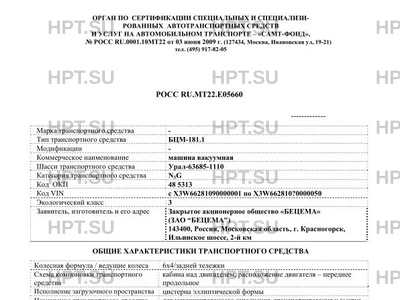 | Тип ТС | БЦМ-181.1 на шасси Урал-63685-1110 |