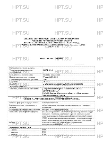 | Коммерческое наименование | БЦМ-181.1 на шасси Урал-63685-1110 |