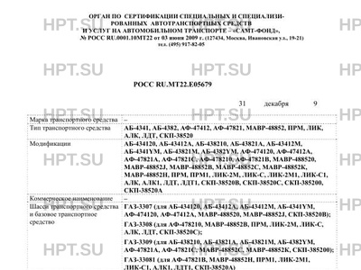 | Тип ТС | АБ-4341, АБ-4382, АФ-47412, АФ-47821, МАВР-48852, ПРМ, ЛИК, АЛК, ЛДТ, СКП-38520 |