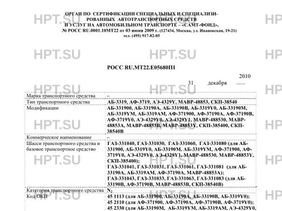 | Тип ТС | АБ-3319, АФ-3719, АЭ-4329Y, МАВР-48853, СКП-38540) |