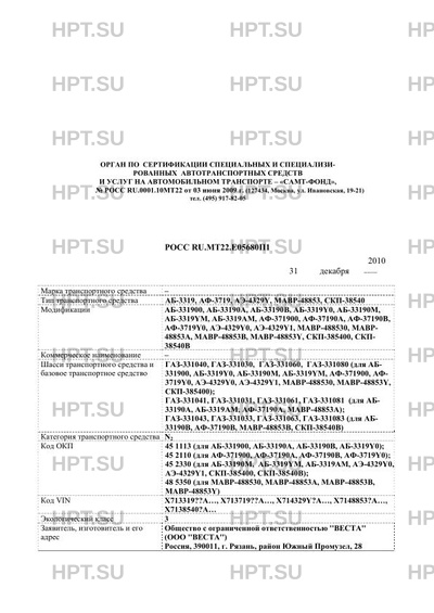 | Базовое ТС / Шасси | и ГАЗ-331040, ГАЗ-331030, ГАЗ-331060, ГАЗ-331080 (для АБ- 331900, АБ-3319Y0, АБ… |
