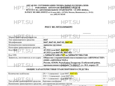 | Количество осей/колес | 2/8 + 1 (запасное) - (для 8447, 8447-03) 3/12 + 1 (запасное) - (для 8447-01) 3/6 + 1 (запасное) - (для 8447-02) |