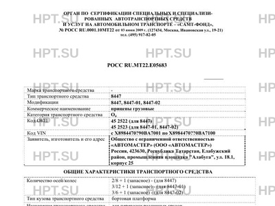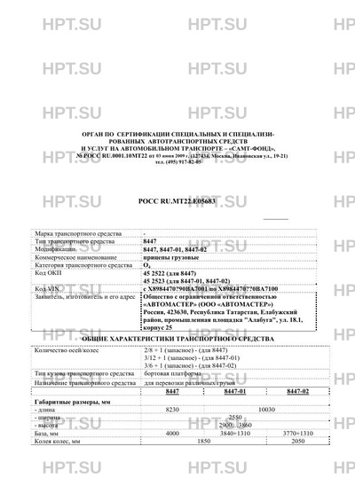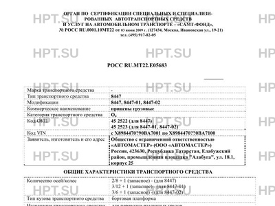 | Количество осей/колес | 2/8 + 1 (запасное) - (для 8447) 3/12 + 1 (запасное) - (для 8447-01) 3/6 + 1 (запасное) - (для 8447-02) |