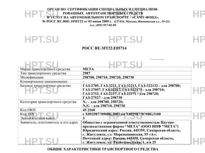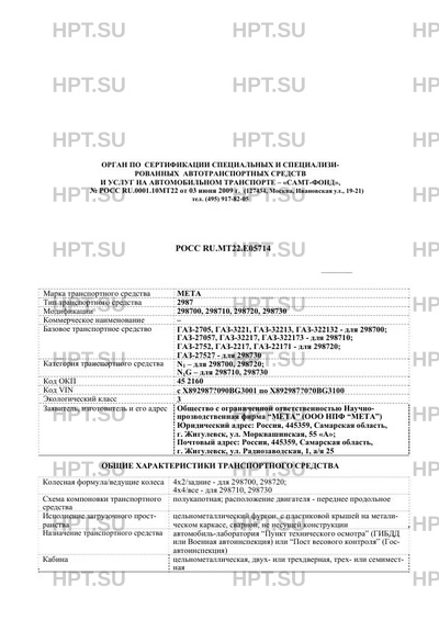 | Коммерческое наименование | 298700, 298710, 298720, 298730 на шасси ГАЗ-2705, ГАЗ-3221, ГАЗ-32213, ГАЗ-3221… |