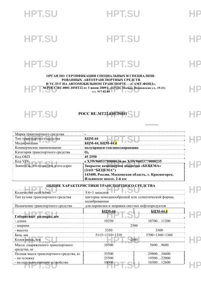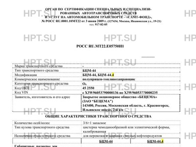 | Коммерческое наименование | полуприцеп-топливозаправщик |