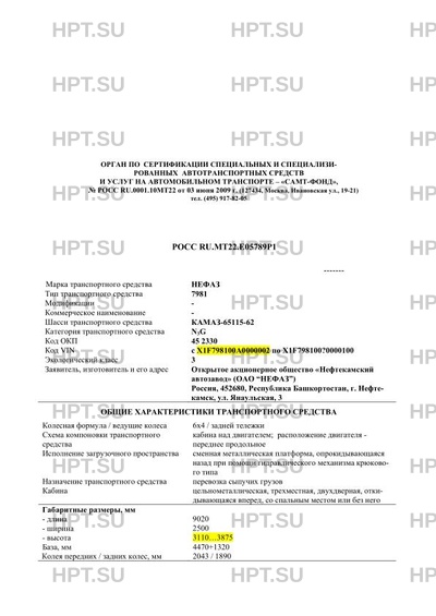 | Тип ТС | 7981 на шасси КАМАЗ-65115-62 |