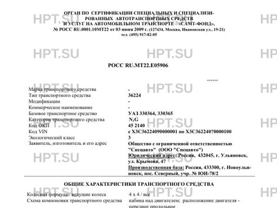 | Коммерческое наименование | 36224 на шасси УАЗ-330364, УАЗ-330365 |