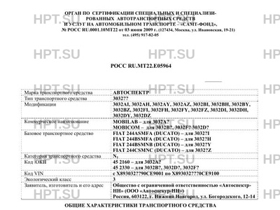 | Базовое ТС / Шасси | FIAT 244ASMFA (DUCATO) - для 3032?I FIAT 244BSMFA (DUCATO) - для 3032?H FIAT 24… |