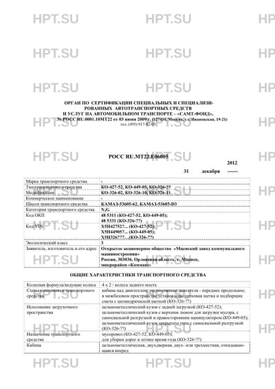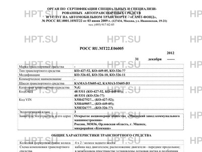 | Тип ТС | КО-326-02, КО-326-10, КО-326-11; КО-427-52, КО-449-05 на шасси КАМАЗ-53605-62, … |