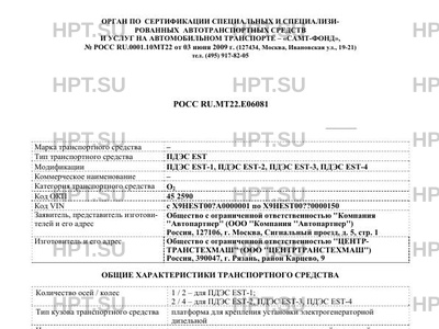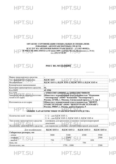 | Тип ТС | ПДЭС EST-1, ПДЭС EST-2, ПДЭС EST-3, ПДЭС EST-4 |