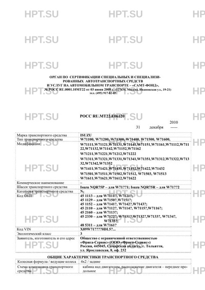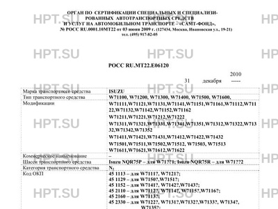 | Базовое ТС / Шасси | Isuzu NQR75P - для W71??1; Isuzu NQR75R - для W71??2 |