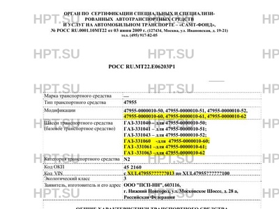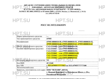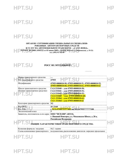 Базовое ТС / Шасси ГАЗ-331040 - для 47955-0000010-50; ГАЗ-331041 - для 47955-0000010-51; ГАЗ-33104…