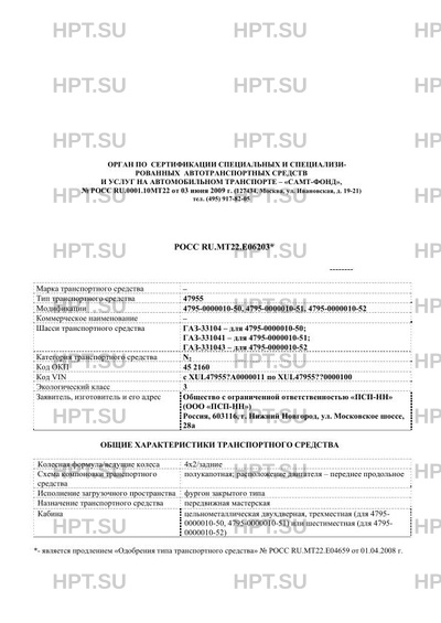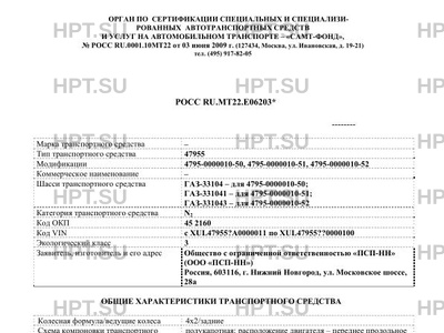 | Базовое ТС / Шасси | ГАЗ-33104 - для 4795-0000010-50; ГАЗ-331041 - для 4795-0000010-51; ГАЗ-331043 -… |
