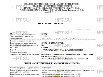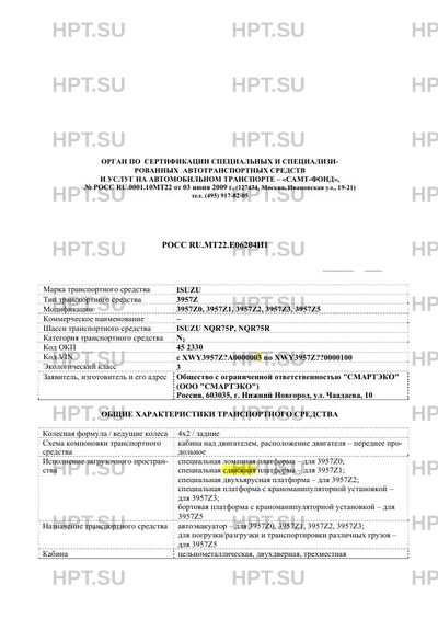 | Коммерческое наименование | 3957Z0, 3957Z1, 3957Z2, 3957Z3, 3957Z5 на шасси ISUZU NQR75Р, NQR75R |