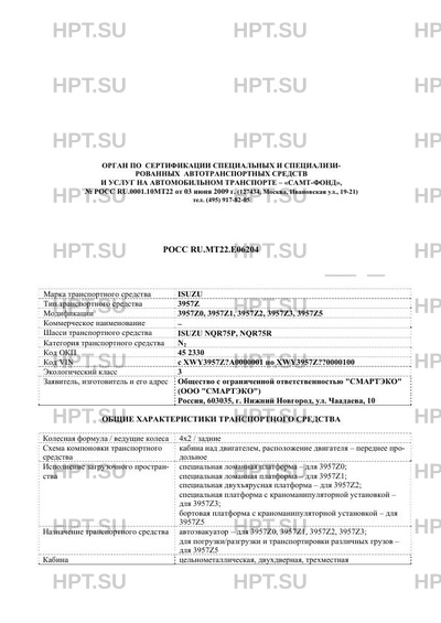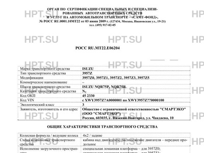 | Коммерческое наименование | 3957Z0, 3957Z1, 3957Z2, 3957Z3, 3957Z5 на шасси ISUZU NQR75Р, NQR75R |