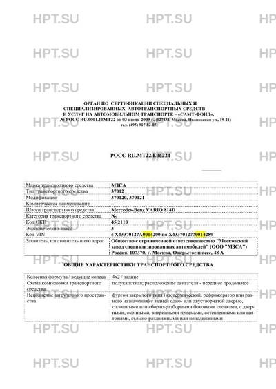 | Тип ТС | 370120, 370121 на шасси MERCEDES-BENZ Vario 814D |