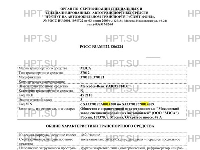 | Коммерческое наименование | 370120, 370121 на шасси MERCEDES-BENZ Vario 814D |