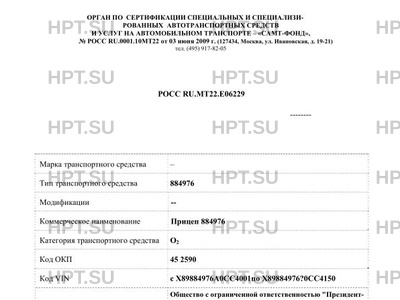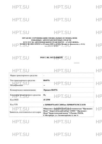 | Коммерческое наименование | Прицеп 884976 |