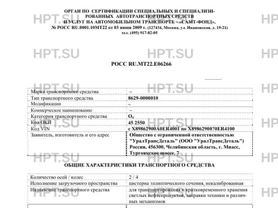 | Исполнение загрузочного пространства | цистерна эллиптического сечения, некалиброванная |