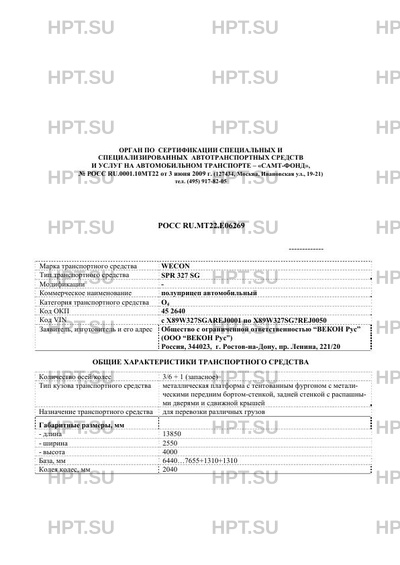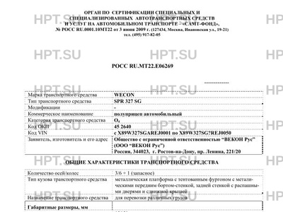 | Код VIN | с X89W327SGАREJ0001 по X89W327SG?REJ0050 |